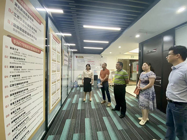 upay钱包官网技术广西办事处总经理甘继敏带领拜访领导一行参观了upay钱包官网技术广西办事处,详细介绍了智慧校园建设、认证培训、专业共建院校运营等内容。