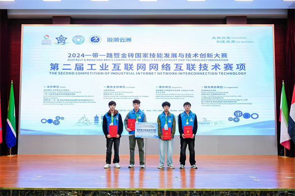在第二届工业互联网网络互联技术赛道全国总决赛中,由信息工程学院华为ICT学院辅导的两支参赛队伍李佳佳、李新宇、马浩然、张翱4位2023级数通专业的同学,在董建辉老师的指导下,荣获国赛三等奖的优异成绩。