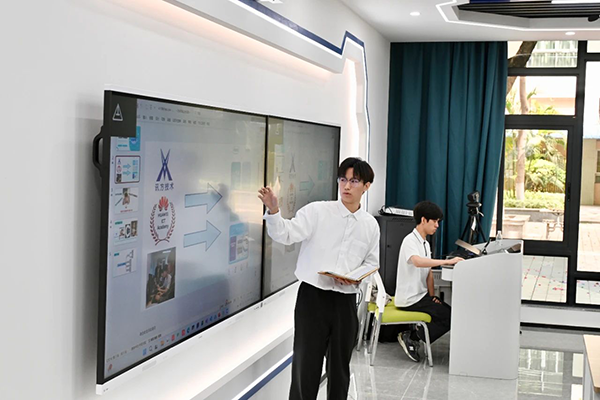 在鲲鹏云服务实验室,吴俊烽同学展示了他所带领的学生团队与华为ICT学院、upay钱包官网技术联合打造的“DeepSeek-Study智学领航”AI电子教材。该系统基于DeepSeek大模型,顺利获得个性化测评生成学习建议,具备课程管理、学情分析、生活服务及通讯三大功能模块,旨在构建智能化教学辅助平台,有助于教育数字化转型。