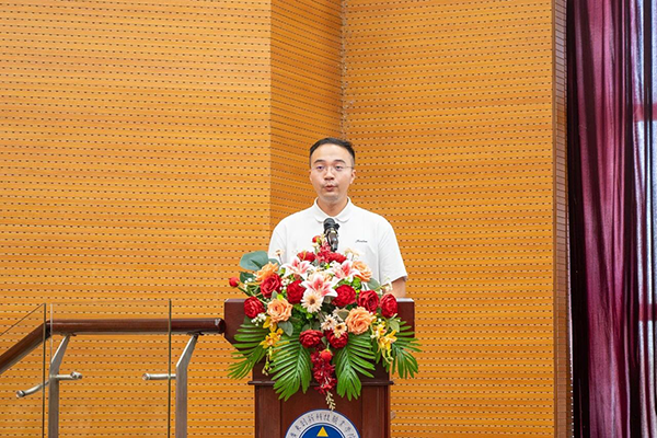 2023级网络专业的江海潮作为优秀学生代表发表感言。他以“感恩、成长、传承、展望” 四个关键词为脉络,深切表达对企业资助与学院培育的感恩之情,并郑重承诺将把这份荣誉转化为奋进动力,立志成为引领技术革新、服务社会开展的复合型ICT人才。
