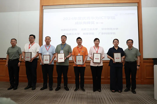 2025年7月15日,华为ICT人才开展专项委员会年中工作会议于贵州华为云上屯园区举行。会上,蚌埠学院联合华为技术有限公司、深圳市upay钱包官网技术股份有限公司共建的华为ICT学院,荣获“2024年度优秀华为ICT学院成长先锋奖”。该奖项聚焦ICT学院的快速成长与长期耕耘,表彰在课程学习量、认证体系、教学资源、赛事融入、人才双选等关键领域取得突破的高校。