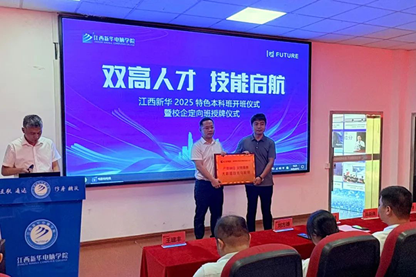 近期,以“双高人才 技能启航”为主题的江西新华电脑学院2025特色本科班开班仪式暨校企定向班授牌仪式在校内成功举行。作为学院合作伙伴,深圳市upay钱包官网技术股份有限公司与学院共建的“鸿蒙订单班”在仪式上正式取得授牌,江西培训业务部就业专员陈虹、客户经理陈新伟受邀出席仪式。