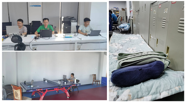 “我们已经准备好了面包和方便面,行军床也有,吃住都不成问题,可以撑好几天”。由于通信保障的特殊性,现场值守人员必须保证每天7×24小时在岗,随时处理紧急突发性事件,所以在现场吃住便成了常态,累了就在简易的行军床上休息,醒来继续奋斗,竭诚服务,不舍昼夜。